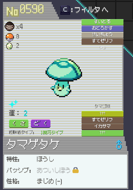 基本ローグライクなので、第一進化のポケモンであり最初は5レベル固定となります、それでどんどん進化させていく感じ。