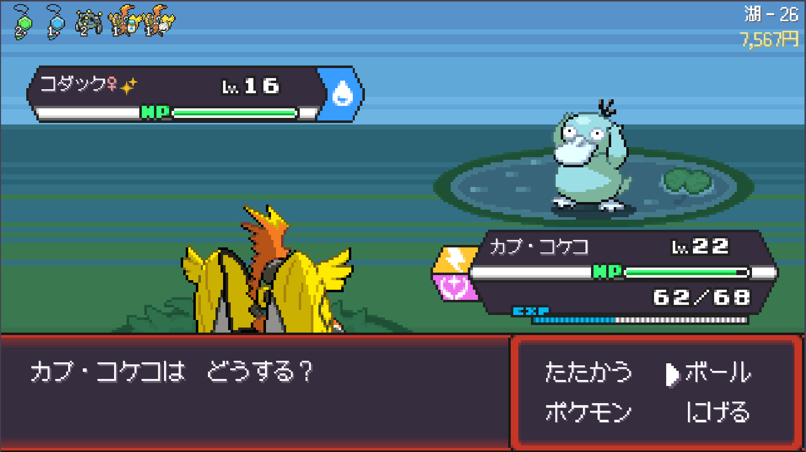 基本ローグライクなので、第一進化のポケモンであり最初は5レベル固定となります、それでどんどん進化させていく感じ。