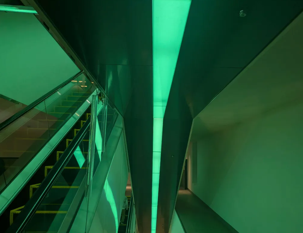 めっちゃ緑色のエスカレーター