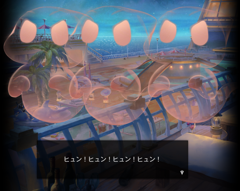 そして各々はお化けに遭遇し船のデッキに集まってきていた