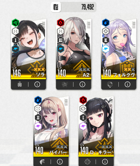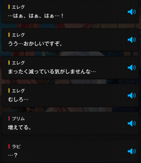 これが今のパーティです、ストーリーをもっと進めていきたい、あと個別キャラのお話ももっと読みたいから、好感度上げもやっていこう積極的に…