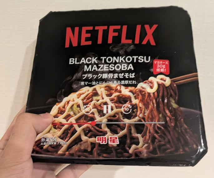 昨日はセブンでしてる Netflix コラボのまぜそばカップ麺を買って食べたよ。美味しかった。