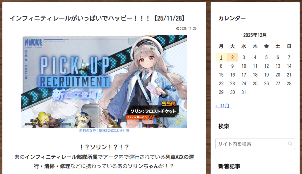 今日は早めに日記投稿すると思います、NIKKEの話になるかな冬イベントの情報が色々出たからね。
