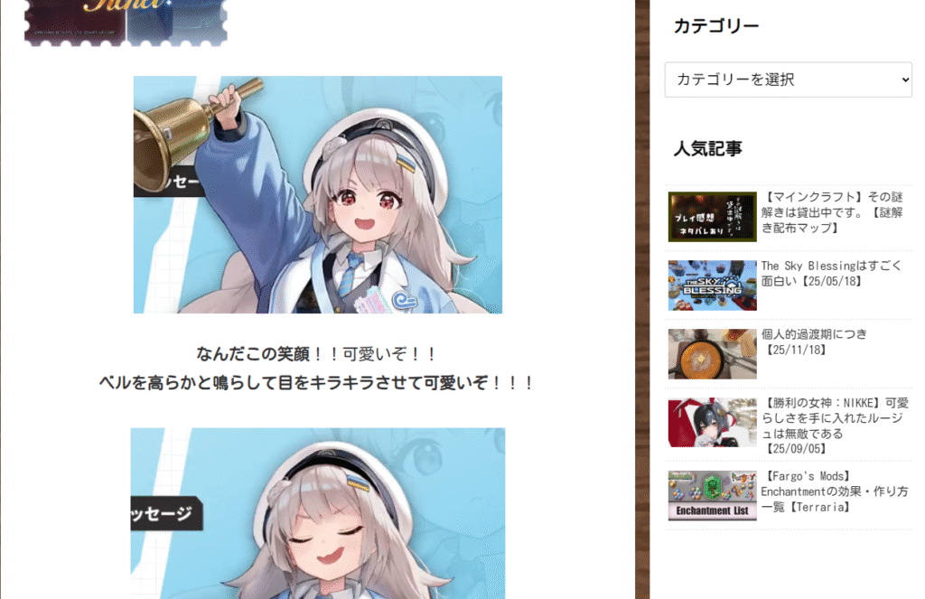 サイドバーってサイトのアクセスというかほかの記事だったりの遷移方法としてかなり有能だから。あって嬉しいものだ。