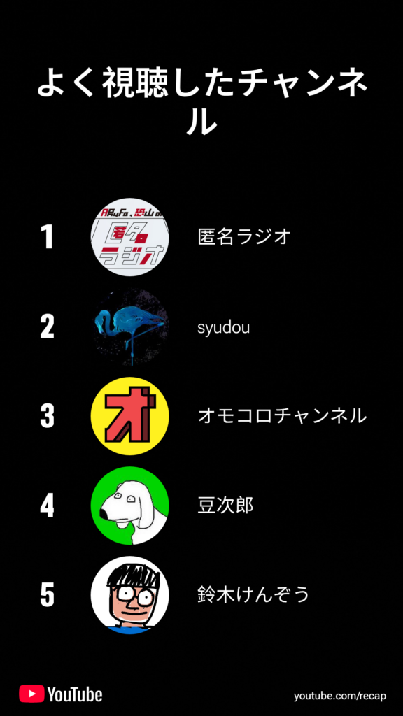 Youtubeも統計を見れるようになってるね、Youtubeはかなり前から一年の統括が見れるようなやつやってるよね。
