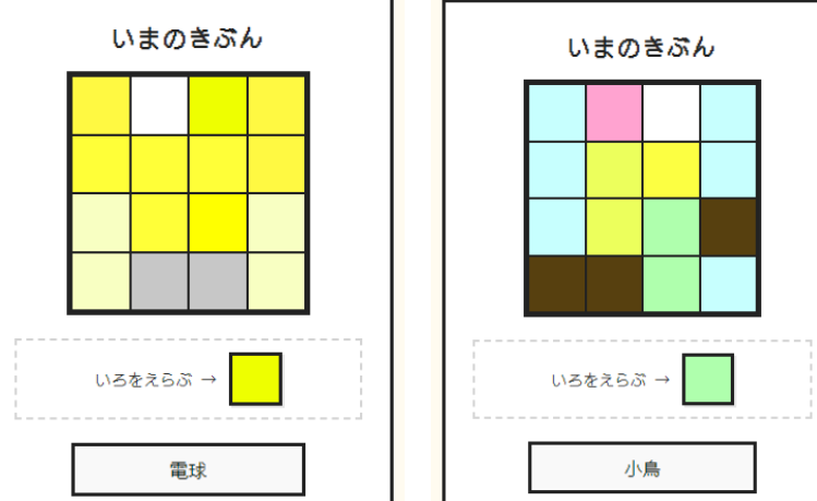 このような4×4のドット絵を描いて、ランダムなユーザーとドット絵を交換して楽しめるというサイトが公開されていて面白そうだったので、何個かドット絵を描いて交換してみた。