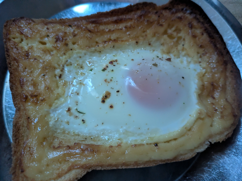今日は食パンにマヨネーズを囲みその中に卵を落として焼いたものを作り食べた。
