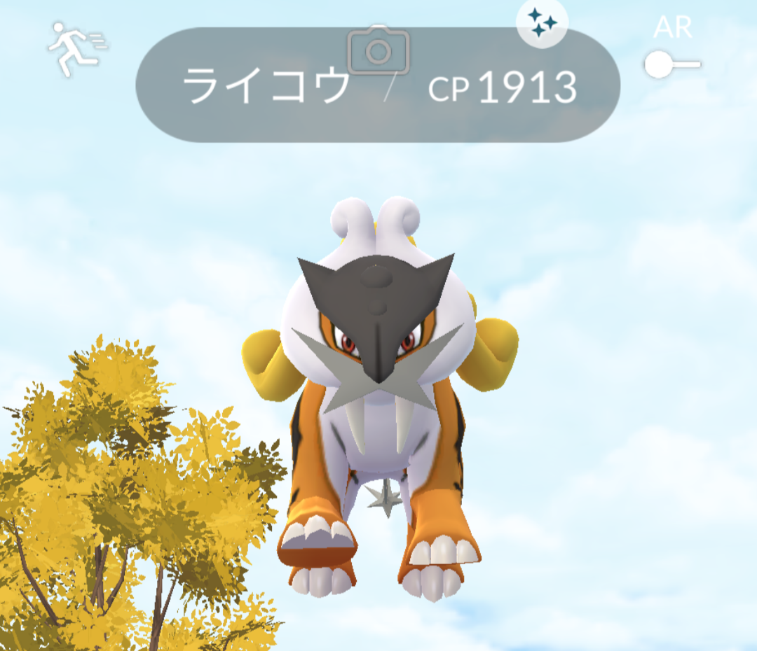 今月のリサーチ報酬の100レベルでもらえるライコウが光りました、確定で捕まる色違いが一番うれしいですね。