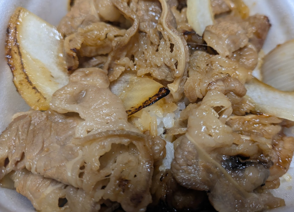 たまねぎが良い味を出していて、結構辛めで固めのたまねぎで肉と一緒に食べると甘めのたれと合わさってかなり美味しい。