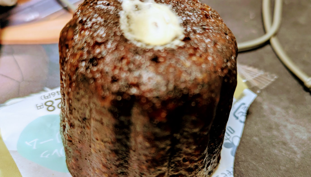 これはローソンの珈琲カヌレ、これおいしい、中にホイップ