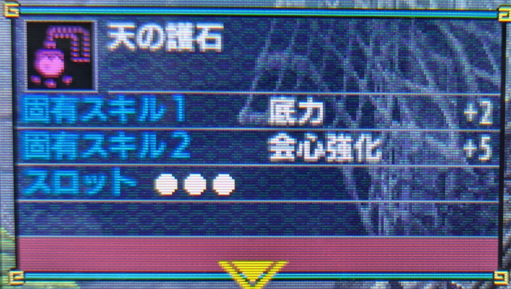 この装備はおそらくこのデータの中で一番いいお守りを引いた記念に作ったような気がする、そしてこの装備を作って満足して辞めたのも覚えている。
