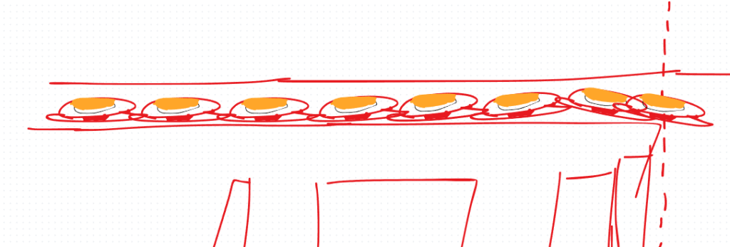 くら寿司、に行ったんですが、皿が流れてるレーンが、たびたび詰まって、そのたびに店員の人が押し込んでまた詰まってを繰り返してた。
