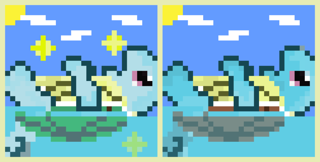 【ドット絵】ゼニガメ&ゼニガメ色違い 2024.10.26 よくない!?サクッと書いたからあんまり出来は良くない、ごめんなさいゼニガメの色違い厳選を始めます、たぶん日曜とかあたりから配信も再開したいですね。 関係ないですが、今日10月26日は友達となんばで食べ歩きととするよ。 最近おしゃれが好きです、見た目がよくなったら気分も上がるよね!!!ヘアオイルがなくなってきた、あのつけて髪乾かした時のサラサラ感が大好きさ コメダ珈琲のコメ牛をたべためちゃうまかったみんな食べたほうがいい。