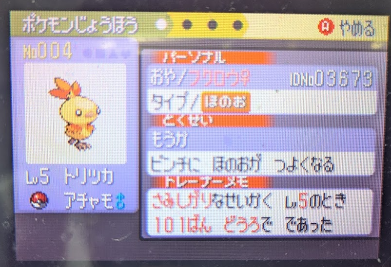 | 出会った場所 | 101番道路(ソフトリセット) |