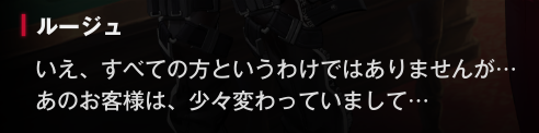 ルージュになぜ、今回のイベントに出る予定がないのに、ミルクとエクシアを連れて、来店したうえで立ち入り禁止のエリアに侵入しようとしたのか、聞かれてるね。