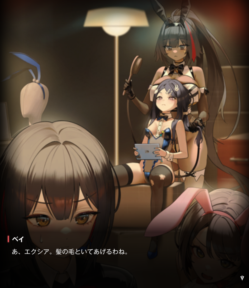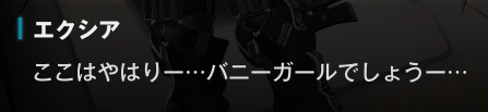 エクシアは着たいバニー衣装を決めたらしい、何やらコンピュータが内蔵されてるらしい?何を言ってるんだ?NIKKEの世界では服にコンピュータを仕込むのが流行っているのか?水着エレグの時もそうだったけど