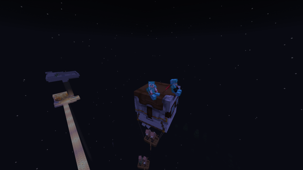 ネザーで見つけることができるアイテムを水の中でふやかしたら、インスタント味噌汁などに入ってる乾燥豆腐と同じ原理ででっかくなる、そしてそれに専用の鞍をつけたらそっらもとべて空中作業も楽になる便利なガストことハッピーガストだね。
