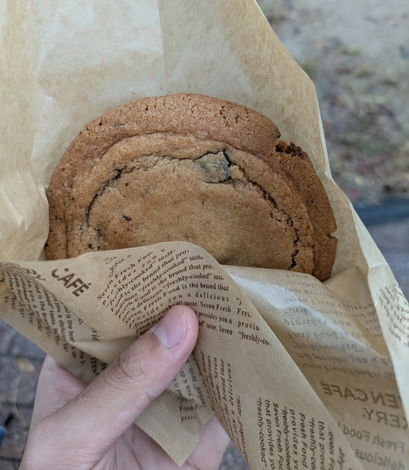 ほかにもクロワッサンだったり色々売っていたのですが、今回はこの3つだけ買って食べてみました、前々からセブンで売っているというクッキーが気になっていたので、今回初めて遭遇してかなりうれしかった。