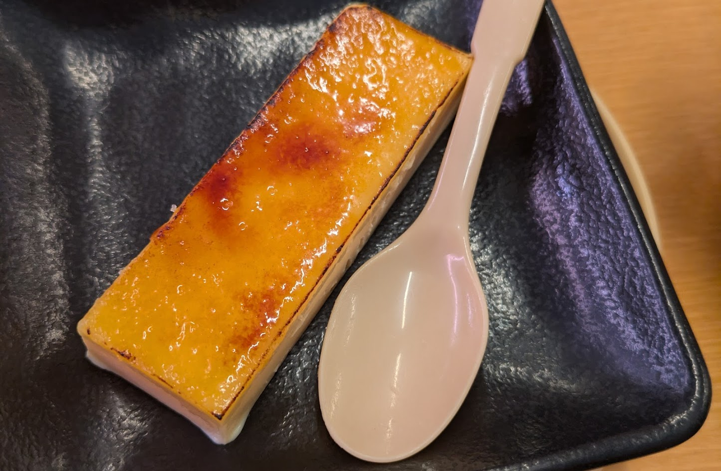 実際食べてみた訳だが、カスタードが冷やされて固まっていて、上にキャラメルがある感じの味で美味しかった、最初はかなり固めで冷たすぎなくらいだったけど、大トロを注文して食べてる間にいい感じの具合になった。